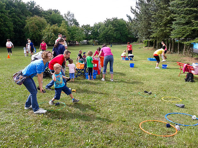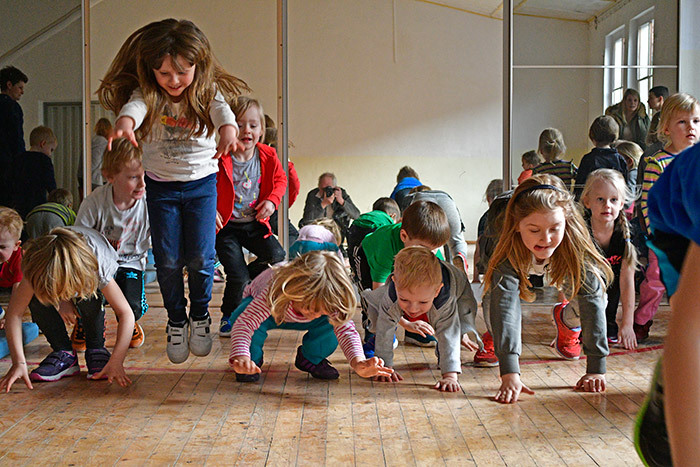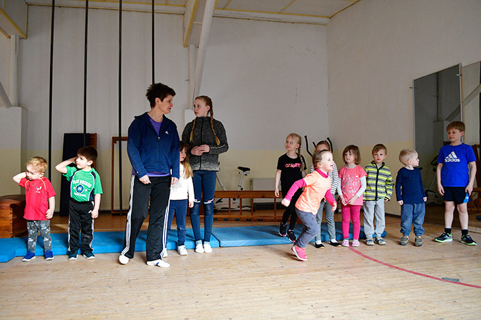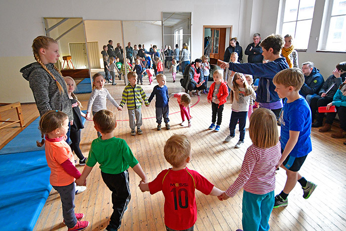 zum Kinderturnen nach Kleinurleben in die alte Schulturnhalle eingeladen. Es gab erfreuliche 23 Anmeldungen und um 16:30 Uhr fanden sich die Kinder aus der Umgebung in der Halle ein.